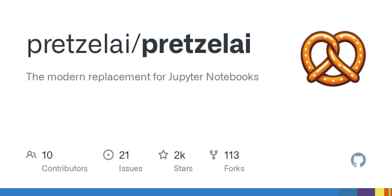 Pretzel AI is an advanced, open-source alternative to Jupyter, offering features like AI code generation, inline tab completions, a sidebar chat for AI assistance, and error fixing. It seamlessly integrates with existing Jupyter configurations, extensions, and keybindings. Users can quickly get started using pip or a free hosted version, and it supports both OpenAI and Azure API keys. Upcoming features include better real-time collaboration, SQL support, visual analysis tools, and more. Pretzel aims to enhance productivity while maintaining data privacy and user control.