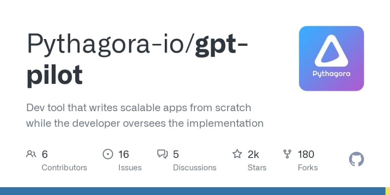 🧑 ✈️ GPT PILOT🔌 Requirements🚦How to start using gpt-pilot?🧑💻️ Other arguments🔎 Examples🏗 How GPT Pilot works?🕴How's GPT Pilot different from Smol developer and GPT engineer ?🍻 Contributing🔗 Connect with usSort:
