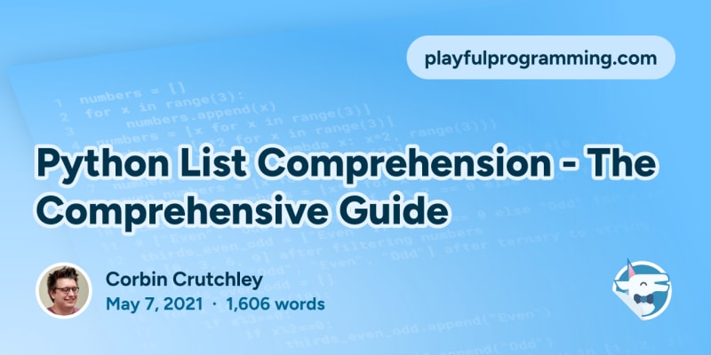 What is List Comprehension? Copy link Link copied!Are List Comprehension Pythonic? Copy link Link copied!Filtering Copy link Link copied!Conditionals Copy link Link copied!Nested Loops Copy link Link copied!Nested Comprehensions Copy link Link copied!Readable Actions and Other Operators Copy link Link copied!Conclusion & Challenge Copy link Link copied!Sort: