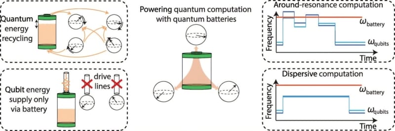 Researchers from CSIRO, University of Queensland, and OIST have theoretically demonstrated that quantum batteries could power quantum computers, potentially quadrupling qubit capacity while significantly reducing energy and cooling requirements. These batteries store energy using light and can be recharged by the computer's own