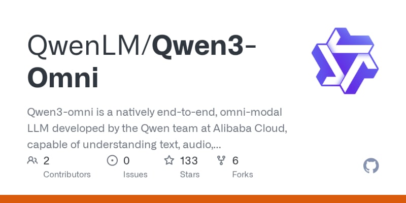 Qwen3-Omni is a natively end-to-end multimodal foundation model developed by Alibaba Cloud that processes text, images, audio, and video inputs while generating both text and natural speech responses. The model features a novel MoE-based Thinker-Talker architecture, supports 119 text languages and multiple speech languages, and