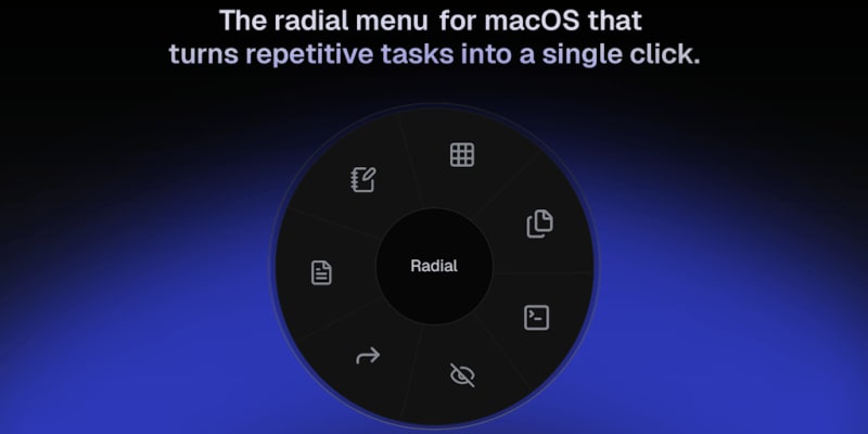 Radial is a macOS pie menu application that lets users create macros for repetitive tasks and trigger them instantly via gestures. Created by Gustav Lübker, it aims to streamline workflows by mapping common actions to a radial gesture-based interface.