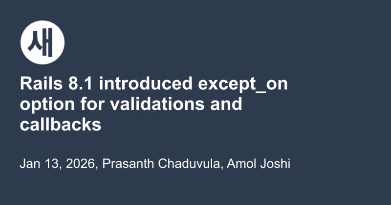 Rails 8.1.0 introduces the `except_on` option for validations and validation callbacks, allowing developers to skip them in specific contexts. Previously, developers had to rely on custom conditional logic or risky workarounds like `save(validate: false)`. The new option simplifies conditional exclusions and makes it easier to