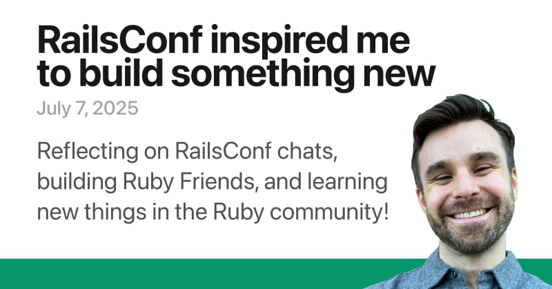 A developer reflects on attending the final RailsConf, sharing insights from conversations with other developers about pricing strategies, Hotwire Native success stories, and book publishing. The post covers a workshop on building iOS and Android apps with Hotwire Native, highlights talks on authentication and PWAs, and