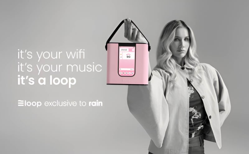 Rain introduces the Loop, a portable 5G router that combines Wi-Fi connectivity, stereo speakers, and Android functionality in one device. The Loop features a touchscreen display, rechargeable battery, dual SIM support with smart switching, and hands-free camera capabilities. Rain offers two data plans: unlimited zones for