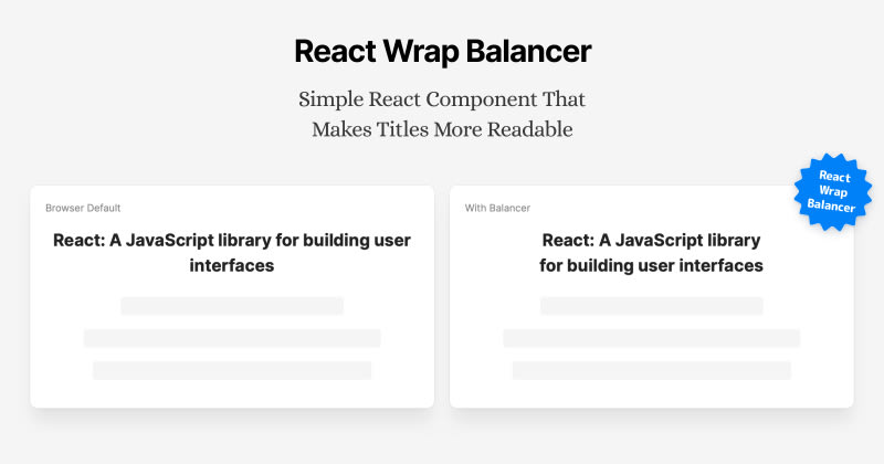 React Wrap Balancer is a lightweight React component designed to make titles more readable by avoiding single hanging words on the last line. It offers easy installation with npm and simple usage by wrapping text content with its <Balancer> component. It supports server-side rendering, works well with web fonts, and integrates