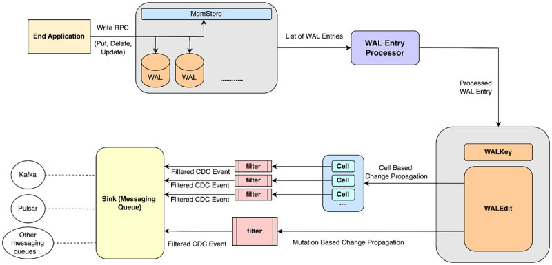 Change Data Capture (CDC) in HBase enables tracking and capturing data changes in real time and making them available for other systems. HBase, a distributed non-relational data store, uses its Write Ahead Log (WAL) to implement CDC. This process supports various business use cases like ad campaigns and e-commerce transactions