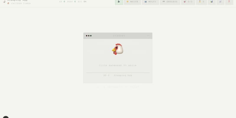Reflex Rooster is a reaction-speed game where players try to respond in under 300ms to a chicken scream. It features solo mode, endless streak mode, and multiplayer race, along with XP tracking, ranks, and badges.