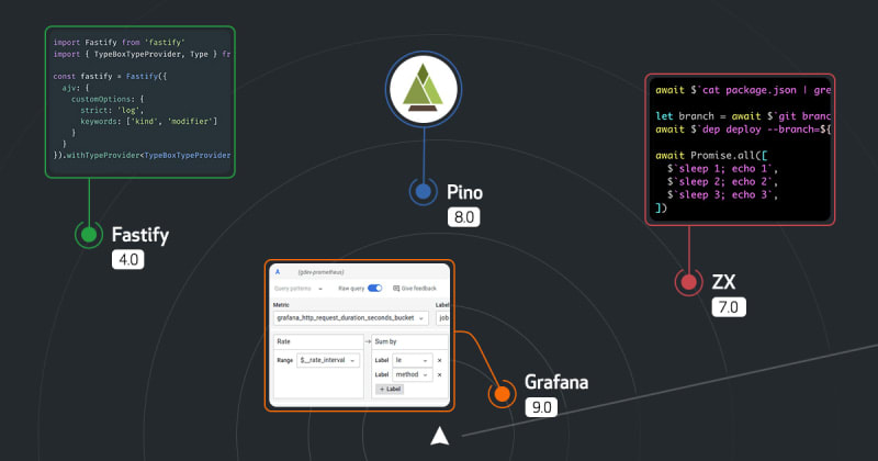 Grafana 9.0Fastify 4.0Pino 8.0whylogs 1.0Git Stats 3.0ZX 7.0Prisma 4.0CodeStream 13.0Capri 4.0EvoBot 2.0Release Radar JuneSort: