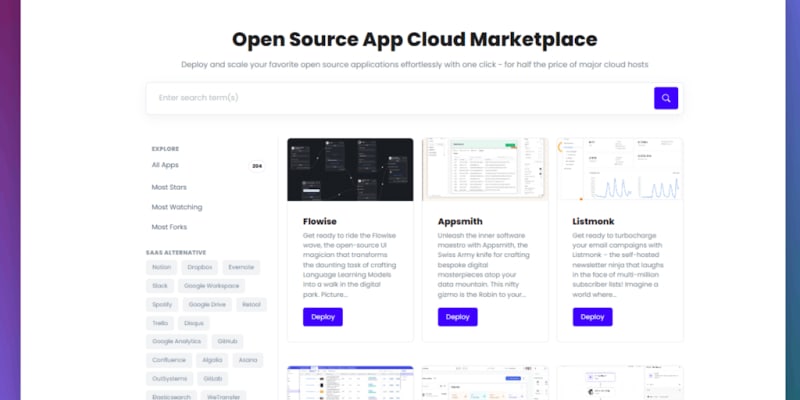 RepoCloud.io offers 1-click deployments of over 200 popular open-source SaaS alternative applications with elastic autoscaling and lower costs compared to major cloud hosts.