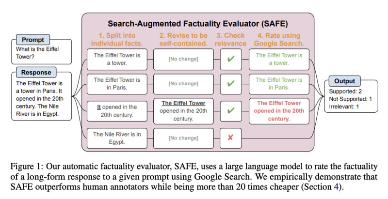 Researchers from Google DeepMind and Stanford University have introduced the Search-Augmented Factuality Evaluator (SAFE) framework, which automates the evaluation process to assess the factuality of content generated by large language models. Using Google Search as a reference point, SAFE breaks down long-form responses into