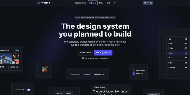 Reshaped is a professionally crafted design system for everyday product development in React and Figma. It first launched on May 7th, 2022, and is rated 5/5 ★ by 3 users. The most active community members Hall of Fame Golden Kitty Awards finalists through the years.
