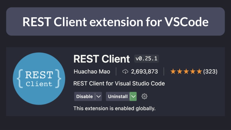 REST Client is a VSCode extension that allows users to send HTTP requests and view the response directly in Visual Studio Code. It is a great tool for creating 'runnable documentation' for REST APIs used in a project. Users can define their own environments and use variables. REST Client has various useful features.