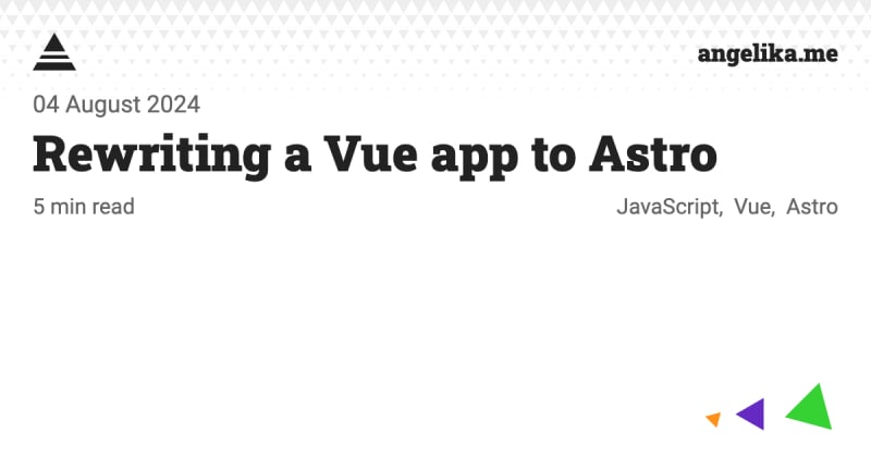 In July 2024, a developer rewrote their project css-art.angelika.me from Vue 2 to Astro. The primary reasons were to learn Astro, update from outdated technologies, and choose a more suitable technology for a mostly static site. Key features such as prerendering pages, client-side redirects, a persistent color picker, and