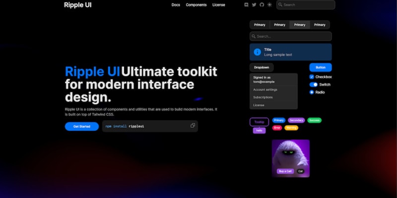 RippleUI is a collection of components that can be easily integrated into your project to provide a consistent, responsive design and improve the user experience of your application. This is RippleUI's first launch. RippleUI was hunted by Mauricio Siu in Design Tools.