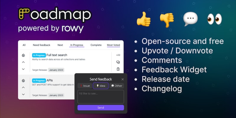 Open-source tool to share roadmap and get customer feedback on upcoming product features. Customers can upvote/downvote, add comments, and get notified when a feature is released.