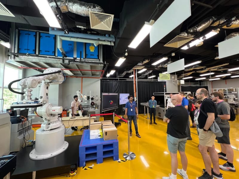 ROSCon 2025 and RIC-AP Summit 2025 featured site tours across Singapore showcasing real-world deployments of ROS and Open-RMF in manufacturing, healthcare, and smart infrastructure. Tours included SIMTech's autonomous material handling, CHART's hospital robot fleet management, SUTD's reconfigurable robots, Changi Airport's