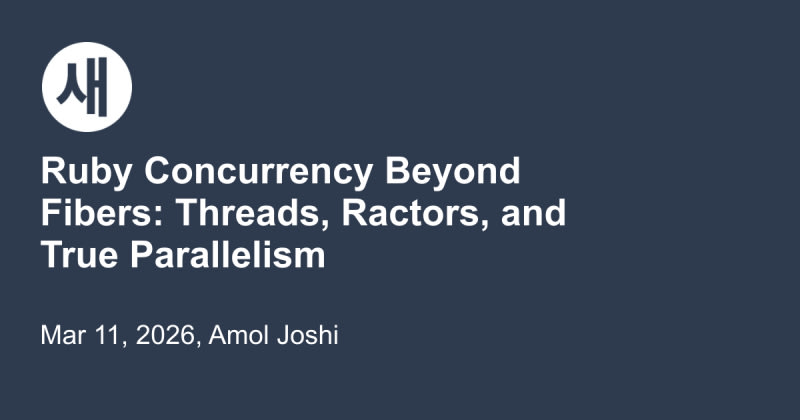 A practical guide to Ruby's concurrency primitives beyond Fibers, covering Threads, Ractors, and the Async gem. Explains the Global Virtual Machine Lock (GVL) and its impact on parallelism, when each primitive is appropriate, and how to combine them for mixed workloads. Includes a comparison table of Fibers, Threads, and