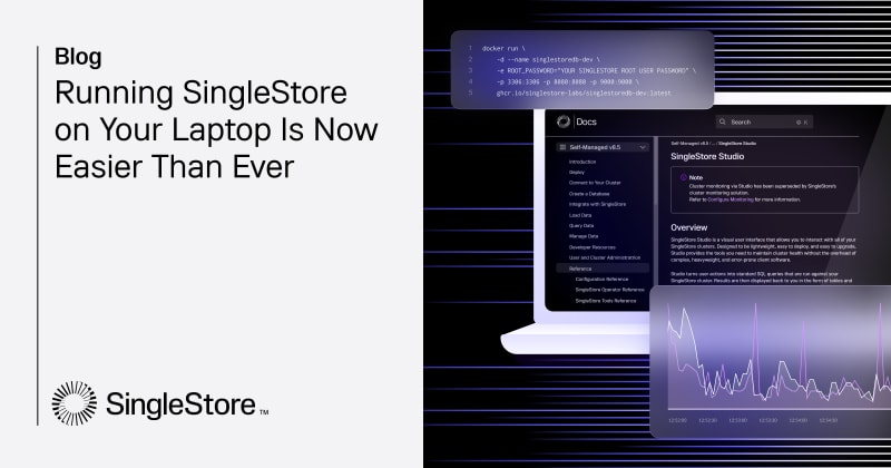 Running SingleStore on your laptop has become easier with simplified steps and access to SingleStore Studio UI. Sign up for a free license or try the new cloud offering for additional benefits.
