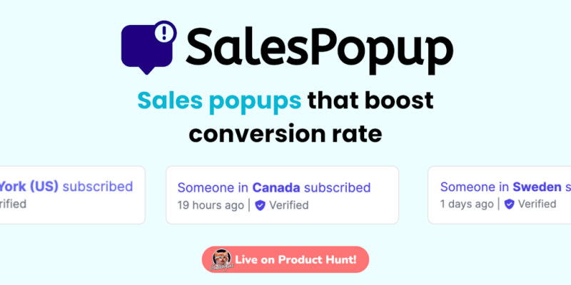 SalesPopup.io is the fastest way to boost your conversion rate by providing an easy way to ship an app with all the necessary features and good design without wasting hours.