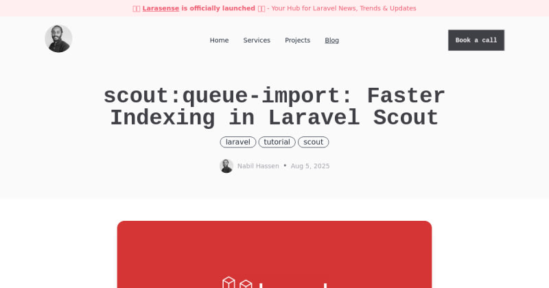 Laravel Scout introduces a new scout:queue-import command that improves indexing performance for large datasets by splitting model ID ranges into chunks and processing them through queued jobs, offering a faster alternative to the traditional scout:import command.