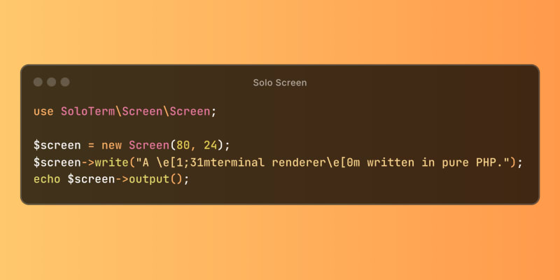 Screen is a terminal renderer created by Aaron Francis, written in pure PHP, and powers Solo for Laravel. It helps build rich text-based user interfaces in PHP applications without being a standalone terminal application. Key features include full ANSI support, Unicode/multibyte handling, buffer management, correct character width handling, and support for vertical scrolling.