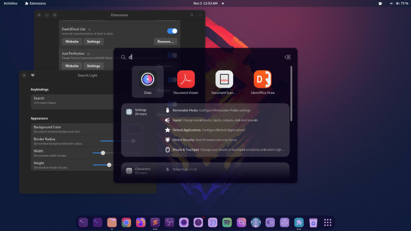 'Search Light' is a Gnome Shell extension that takes the apps search widget out of Overview. It can show any/all results the regular GNOME Shell search can as it’s the same widget, floating above all windows. The default keybinding is ctrl + super + space.