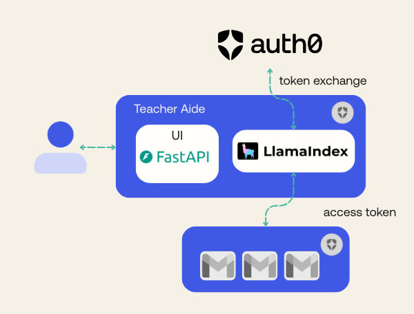 LlamaIndex agents can securely call third-party APIs on behalf of authenticated users using Auth0's Token Vault. The tutorial demonstrates building a teacher assistant that sends Gmail emails through an LLM agent by configuring Google OAuth with Auth0, enabling Token Exchange for federated connections, and using the Auth0 AI