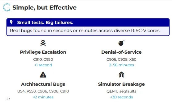 Security researchers have discovered significant vulnerabilities in commercial RISC-V CPU implementations, challenging claims that the open-source ISA is inherently more secure than x86_64. Using RISCover, an open-source differential fuzzing framework, researchers found critical flaws including GhostWrite (a bug allowing