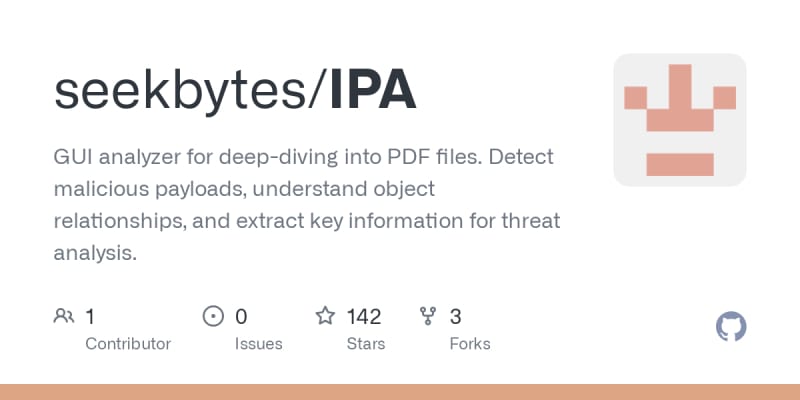 Interactive PDF Analysis (IPA) is a tool designed for in-depth examination of PDF files, particularly to detect malicious payloads and understand object relationships within the files. Inspired by tools from Zynamics and Didier Stevens, IPA offers a graphical interface for easier comprehension of PDF contents, including
