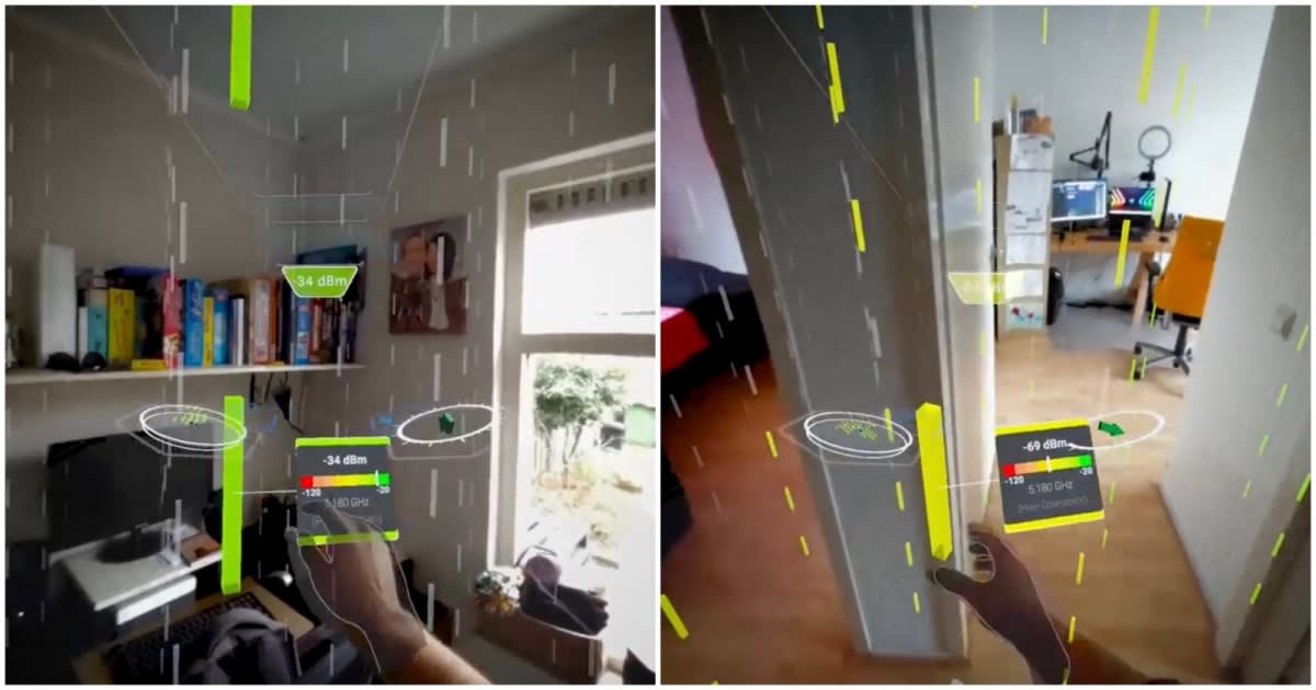 SeeSignal allows users to visualize wireless signal data as holograms overlaid onto real-world environments. The program was developed by the BadVR team and is available via Oculus App Lab. The app's features include accessibility support for colorblind users, equipment locating gadgets, and a "WiFi hands" option.