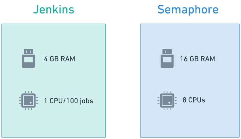 A comprehensive comparison between Jenkins and Semaphore Community Edition covering licensing, hardware requirements, installation, features, and maintenance. Jenkins offers flexibility with lower hardware requirements but requires plugin management, while Semaphore CE provides a Kubernetes-native experience with built-in