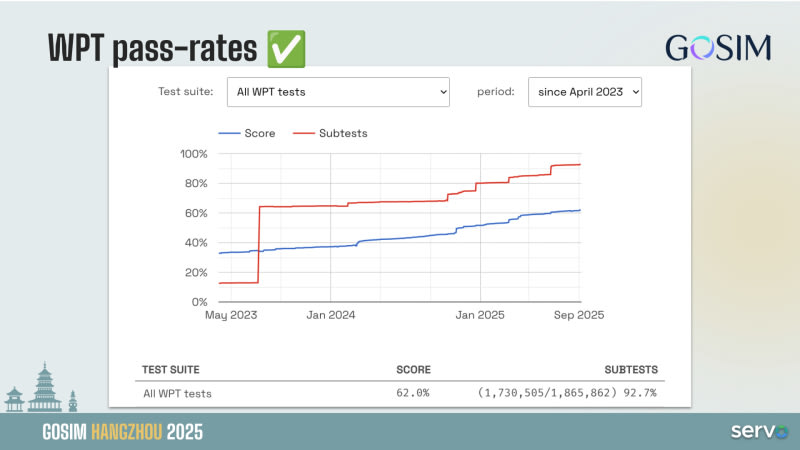 Servo is an independent web rendering engine written in Rust, offering memory safety and parallelism advantages over traditional C++ engines. After Mozilla transferred it to Linux Foundation in 2020, Igalia revitalized the project in 2023. The engine now passes 92.7% of web platform tests, features a modern layout engine, and