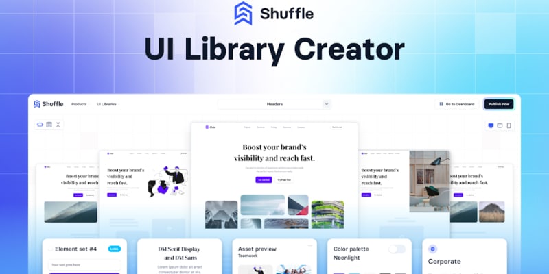 Shuffle is an online visual editor offering drag-and-drop interface with 1000+ ready-made UI components for Tailwind CSS and Bootstrap. The new Shuffle CLI bridges visual design and AI code editors by syncing projects locally, allowing developers to design visually in Shuffle then continue development in IDEs like Cursor, Windsurf, and Claude Code with full AI assistance.
