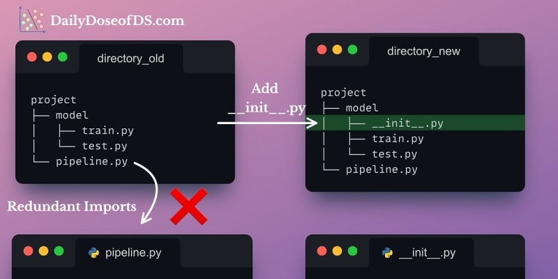 Learn how to simplify your Python project imports by explicitly packaging your project with an __init__.py file. This method not only helps to avoid redundant imports but also allows you to specify which classes and functions can be imported from the package. The article explains the difference between modules, packages, and