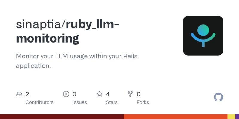 RubyLLM::Monitoring is a Rails engine for tracking LLM usage in applications. It provides a web dashboard for viewing metrics and alerts, requires the RubyLLM gem as a dependency, and includes installation steps for migrations and route mounting. The engine supports flexible authentication through route constraints or HTTP