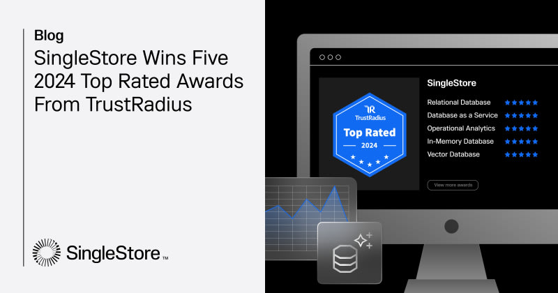 SingleStore wins five TrustRadius Top Rated Awards in 2024, including in the Vector Databases category. The awards are based on customer reviews and ratings, reflecting user satisfaction. SingleStore's data platform is designed to fuel AI-enriched applications and eliminate the need for specialty vector databases.