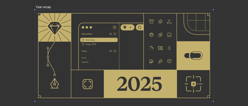 Sketch shipped three major releases in 2025: Athens introduced Stacks (auto layout system) and Frames/Graphics (new container types replacing Artboards); Barcelona added glass effects, progressive blurs, and fade effects for iOS/macOS 26 design; Copenhagen brought a complete UI redesign for macOS Tahoe with focus mode,