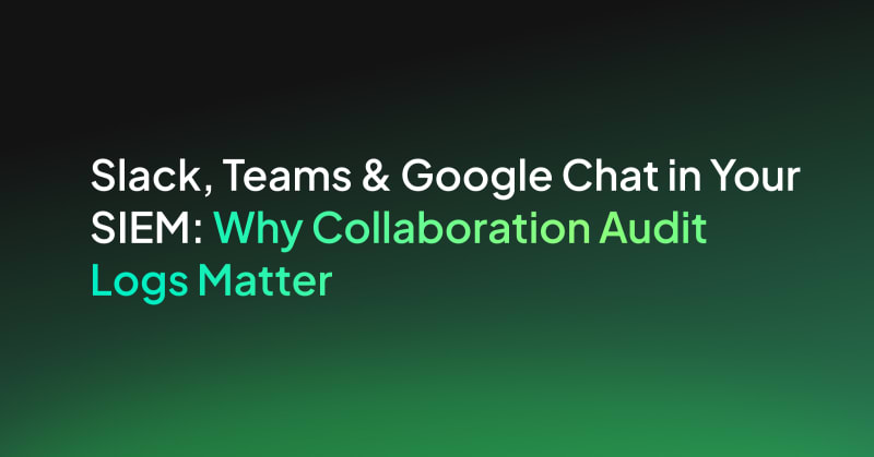 Collaboration platforms like Slack, Microsoft Teams, and Google Chat have become primary systems of record for modern organizations, yet most SIEM programs lack visibility into their audit logs. This creates a significant blind spot during incident response, leaving security teams unable to track admin changes, app installs,
