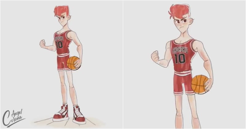 3D Modeler and Character Artist Angel Corona recreated Hanamichi Sakuragi from the Slam Dunk anime series in 3D using ZBrush and Blender, based on a concept by Carlos Vázquez. The project served as a practice piece to experiment with new techniques, with renders and WIPs shared alongside links to other character art works by the same artist.