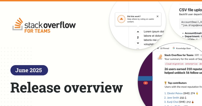 Stack Overflow for Teams Business introduces new summer features including Executive Reports for stakeholder sharing, weekly digests for Slack and Microsoft Teams integration, flexible user group permissions for moderators, voting enhancements to boost participation, and recently viewed content in search. These updates focus on