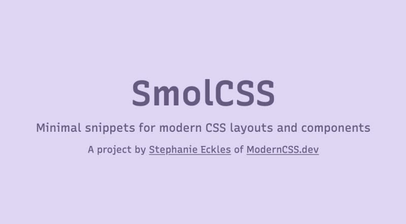 Smol Responsive CSS GridSmol Responsive Flexbox GridSmol Modern CenteringSmol Responsive PaddingSmol Responsive Sidebar LayoutSmol Aspect Ratio GallerySmol Composable Card ComponentSmol Stack LayoutSmol Avatar List ComponentSmol Scroll SnapSmol TransitionsSmol Article AnchorsSmol List MarkersSmol Document StylesSmol Visited StylesSmol Flexible Unbreakable BoxesSmol Focus StylesSmol Background PictureSmol Intrinsic Container8 Comments