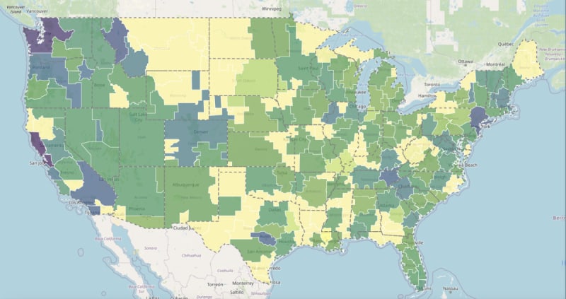A heatmap of software engineer salaries in the US, categorizing compensation into ranges from less than $50,000 to over $300,000. This visualization helps understand the distribution and variations in pay for software engineers across different brackets.