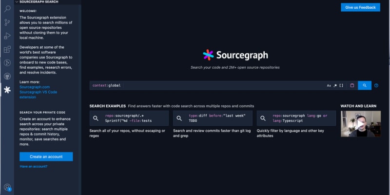 Sourcegraph for VS Code is an extension that allows you to search an index of over 2 million open source repositories right from your IDE. You can quickly find example code and navigate all of the open source libraries you rely on without ever leaving VS Code. The extension is free and available now.