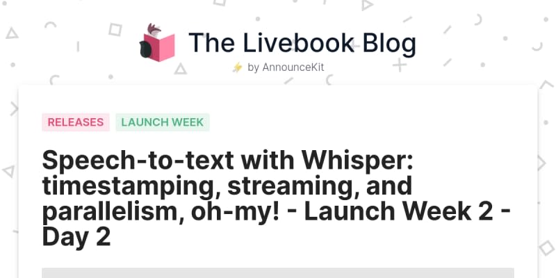 The Whisper speech-to-text model now includes timestamping, streaming capabilities, and parallelism, allowing for faster transcriptions of larger audio files. Elixir developers can now easily transcribe audio using the integrated Neural Network Task in Livebook. Download the latest version and give it a try!