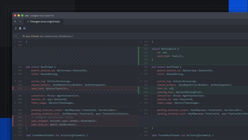 Zed v0.224 ships split diff view as the new default, showing base code on the left and working copy on the right in synchronized scroll. Built on Zed's multibuffer architecture, the feature required solving two core challenges: keeping both sides vertically aligned across all changed files simultaneously, and maintaining