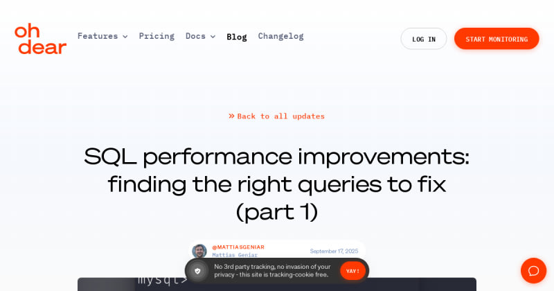 A case study from Oh Dear showing how Mattias significantly improved service performance through SQL query optimization. The post focuses on identifying and fixing the right queries to achieve substantial performance gains.