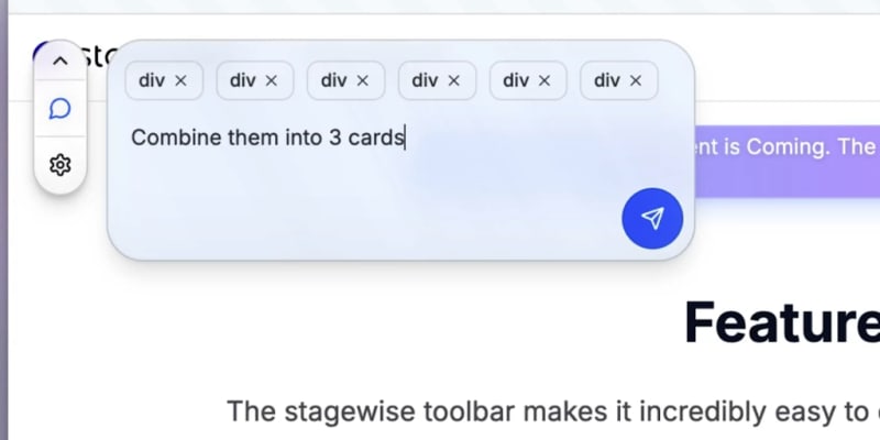 stagewise is an open-source frontend coding agent that runs in your browser and works with existing local codebases. It allows developers to visually edit UI elements by clicking on them and using natural language prompts like 'increase the height here' to make changes directly to source code. The tool bridges the gap between