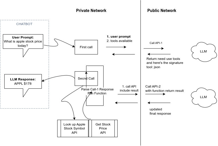 LLM introduces function calling capabilities in the Chat Completions API. It allows users to describe functions in an API call and receive a JSON object as output. This feature provides data privacy and unlimited connectivity with external tools and APIs. There are multiple ways to implement function calling in LLM, such as using the OpenAI Python Client, vLLM, and the Function Calling Generation Model.