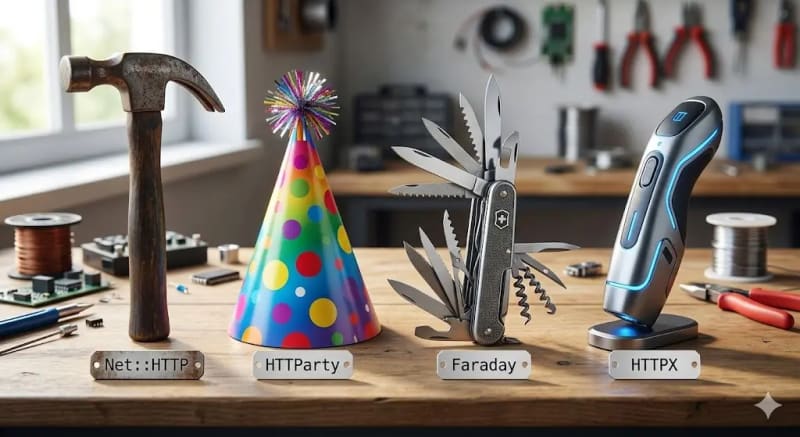 1. HTTParty (The Old Reliable)2. Faraday (The Industry Standard)3. The http Gem (The Modern Choice)4. HTTPX (The Speed Demon)Summary: The Cheat SheetSort: